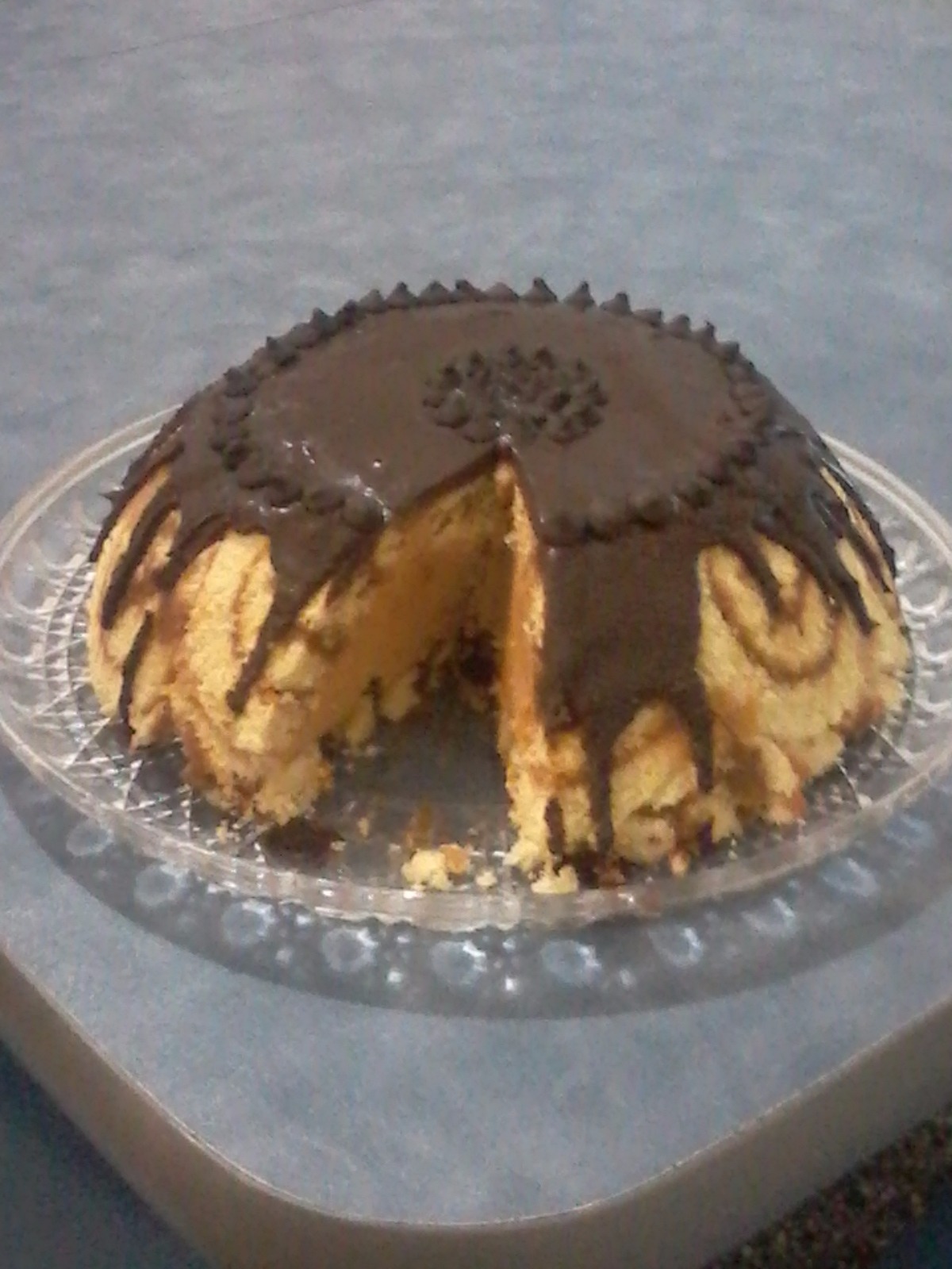 Postre preparado con una base de pionono, y con un borde de profiteroles rellenos de dulce de leche repostero o crema pastelera (a eleccion) y relleno con una crema mousse de limón y vainilla. Y una decoracion rustica de hilos de caramelo.